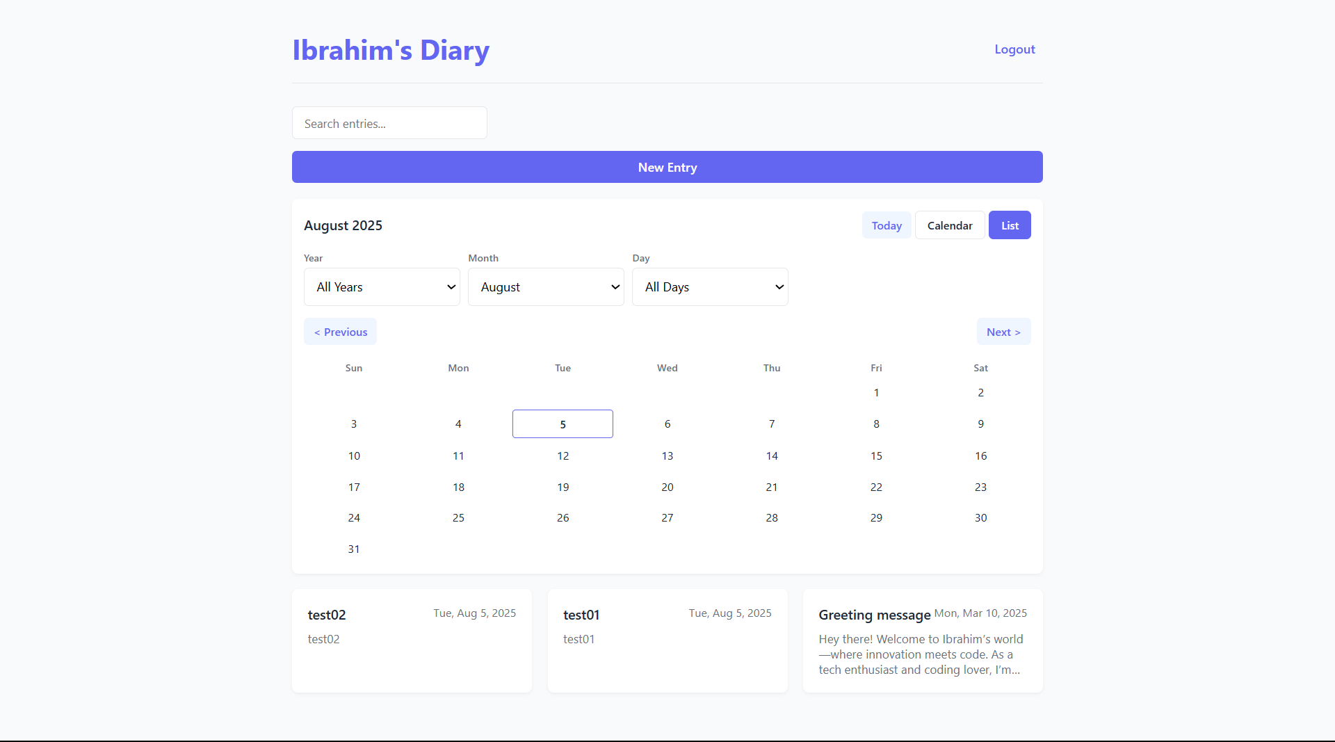 Built a full-stack online diary app with features like content creation, deletion, sorting, organization, password authentication, and a clean, user-friendly UI.