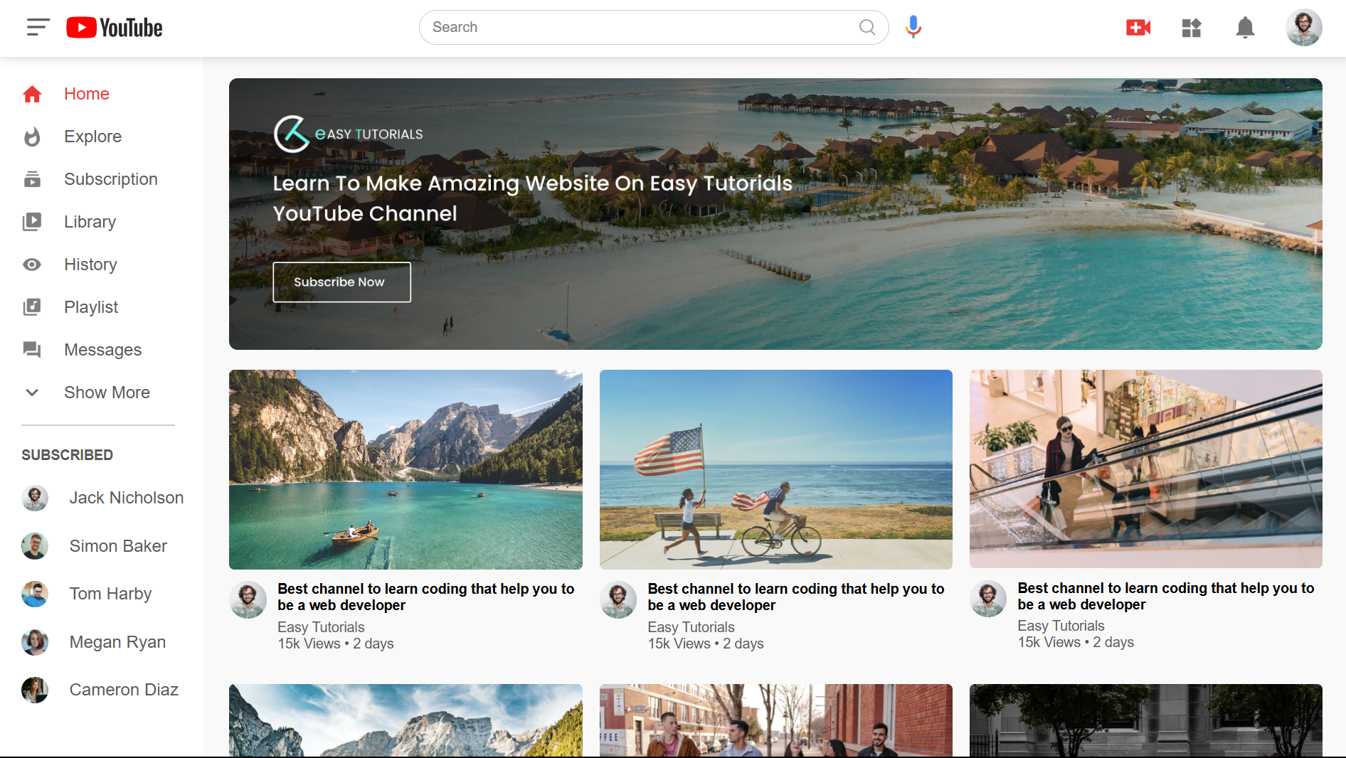 Built a front-end YouTube clone using HTML, CSS, and JavaScript with a responsive layout, video grid, and interactive UI elements.